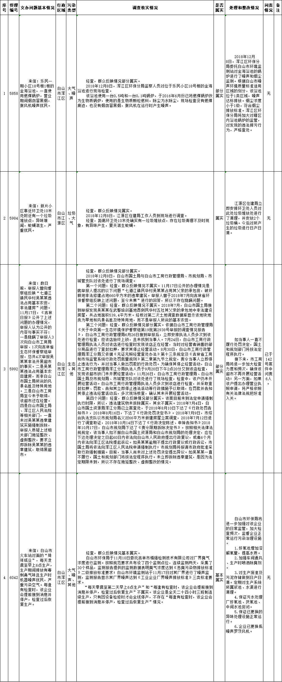白山市群眾信訪舉報轉辦和邊督邊改公開情況一覽表(第32批 2018年12月16日)