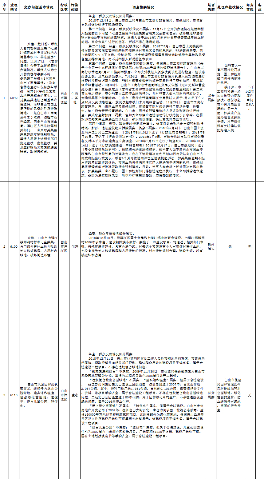 白山市群眾信訪舉報轉辦和邊督邊改公開情況一覽表(第33批2018年12月17日)