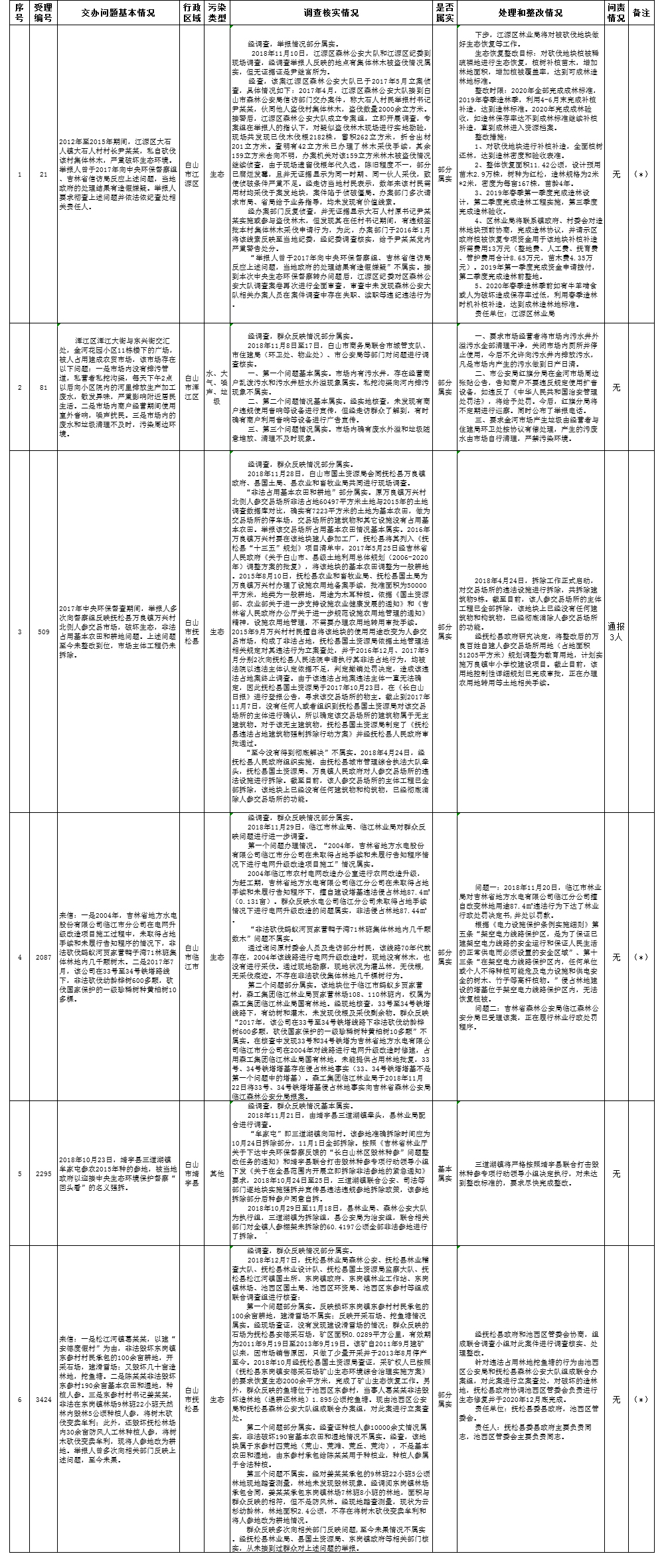 白山市群眾信訪舉報轉辦和邊督邊改公開情況一覽表(第1-33批補報2018年12月18日)